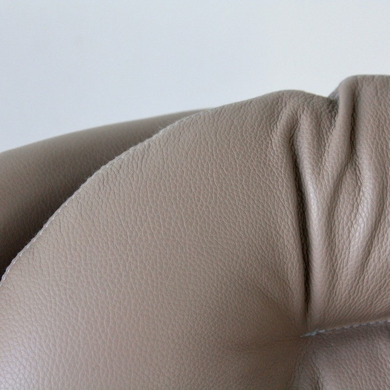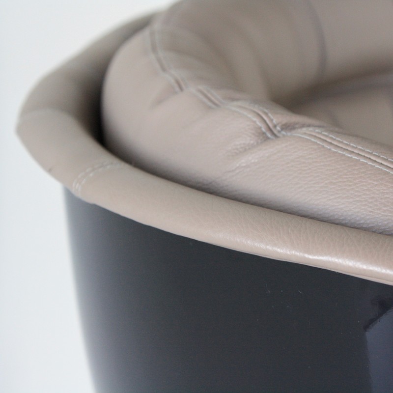 Vintage rotating black fibreglass shell, upholstered with subtle grey leather. Beautiful condition and very comfortable indeed! Named after Colombo's wife 'Elda'.
