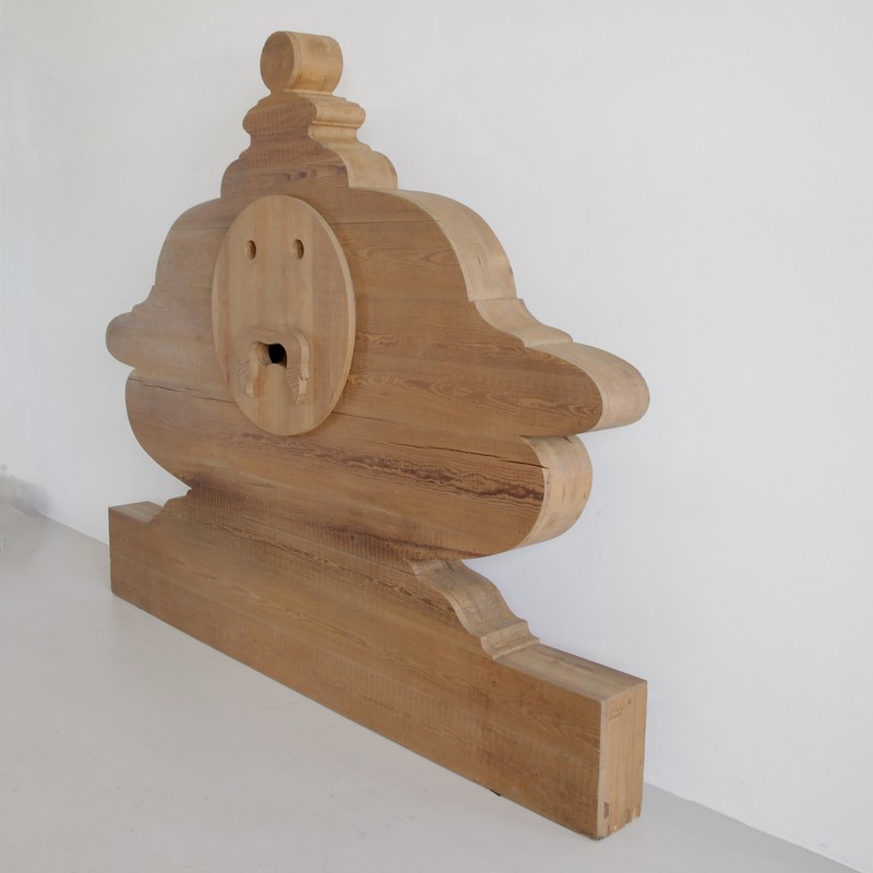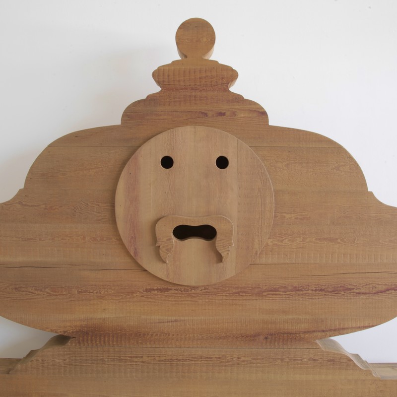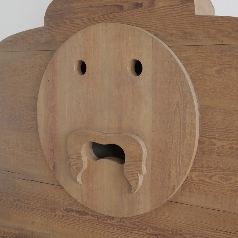 Wooden sculpture made of Russian pine with cross-cutting grain, depicting the 'Mouth of Truth'. Stamped by the artist and Poltronova.