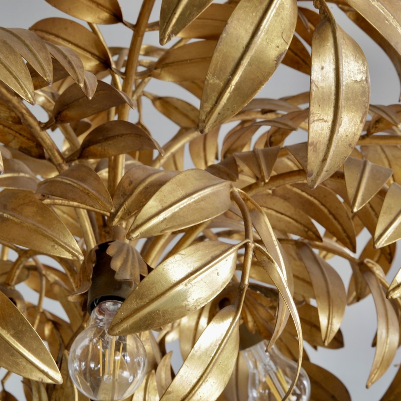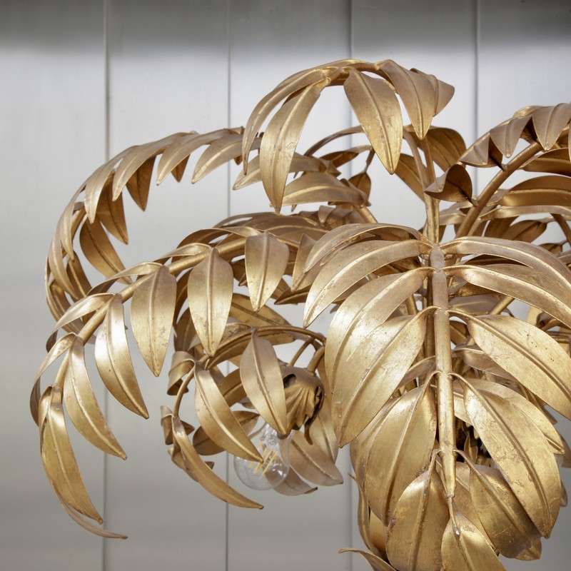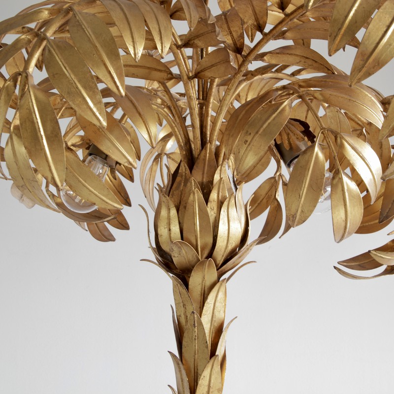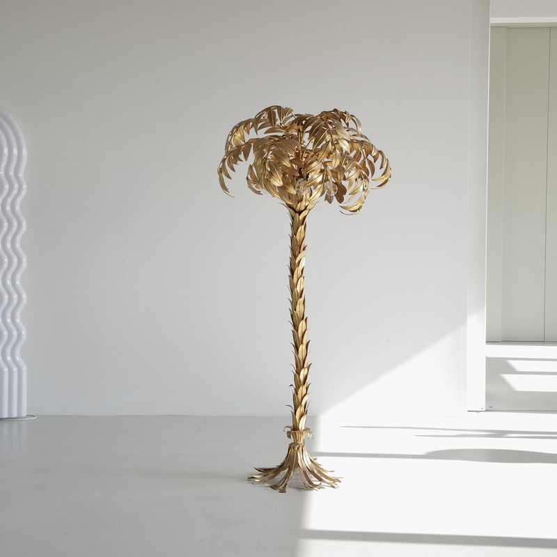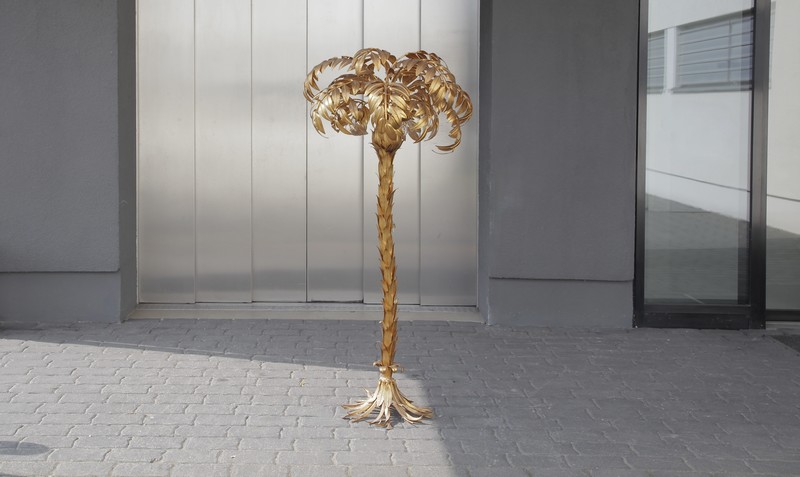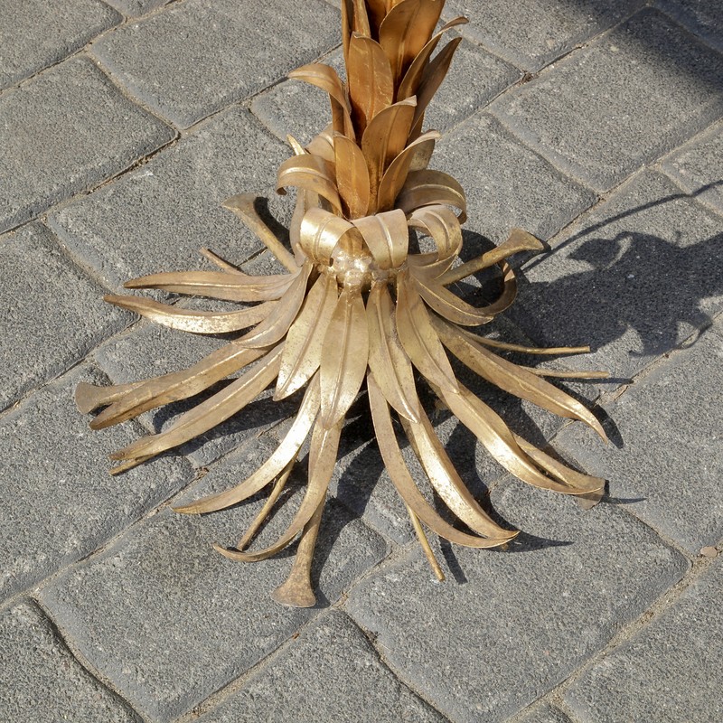 A beautiful single-stemmed Palm Tree floor lamp. Hand-made gilded metal lamp from the 1970s. Three E27 lightfittings. GORGEOUS AND GLAMOROUS PIECE!