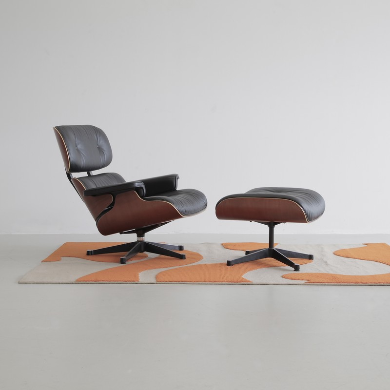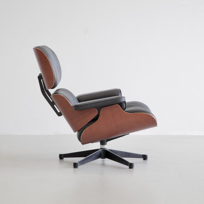 Lounge chair and footstool, designed by Charles and Ray Eames. Germany, Vitra, 1999.