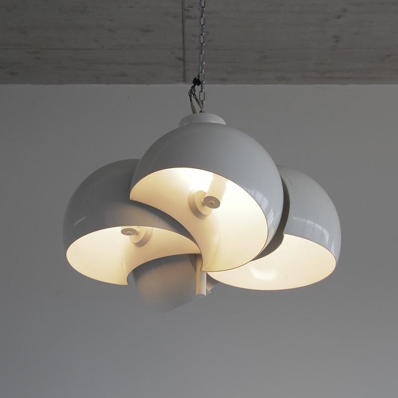 ECATOMBE hanging lamp with four adjustable semi-spherical 360° rotatable reflectors.. The light can be directed in several directions... Four E27 light-fittings.