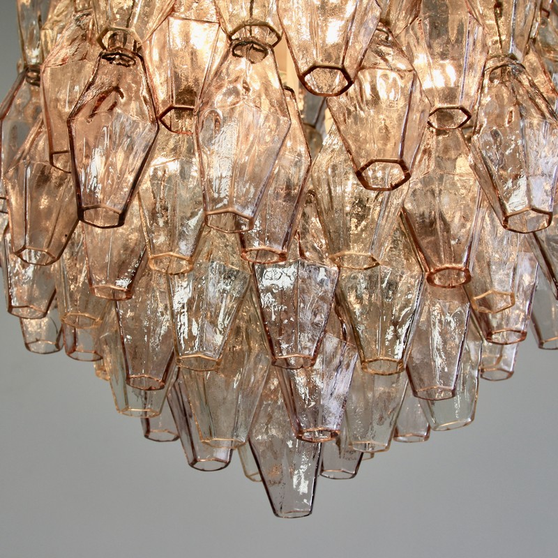 Chandelier in amber and rose, designed by Carlo Scarpa. Italy, Venini, c1965.