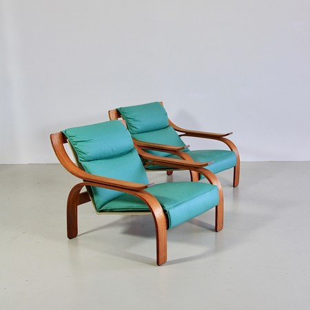 PAIR of green leather Armchairs by Marco ZANUSO, 1964