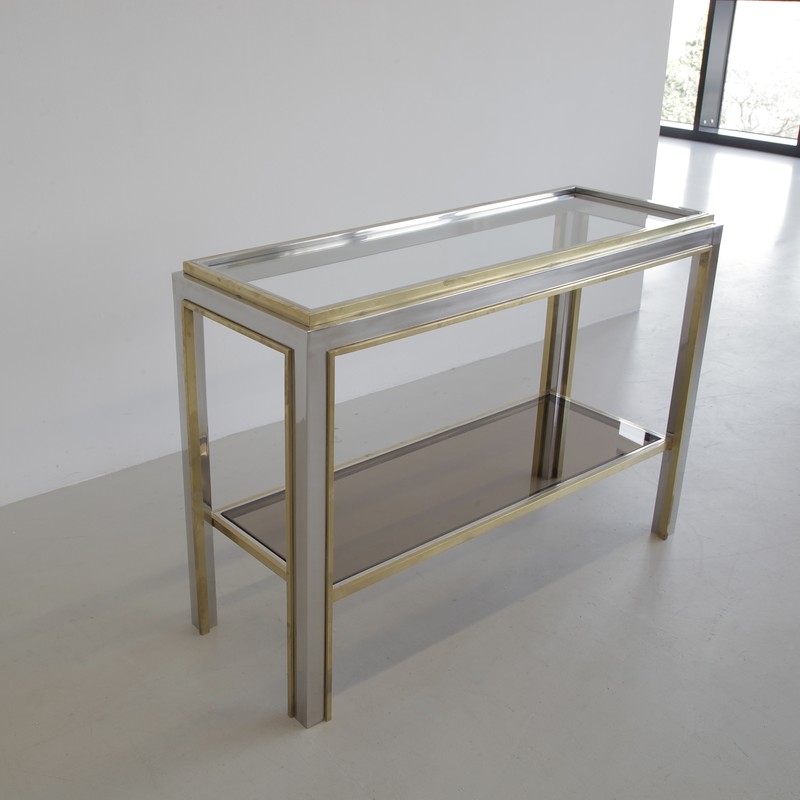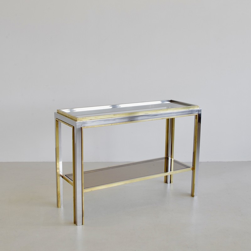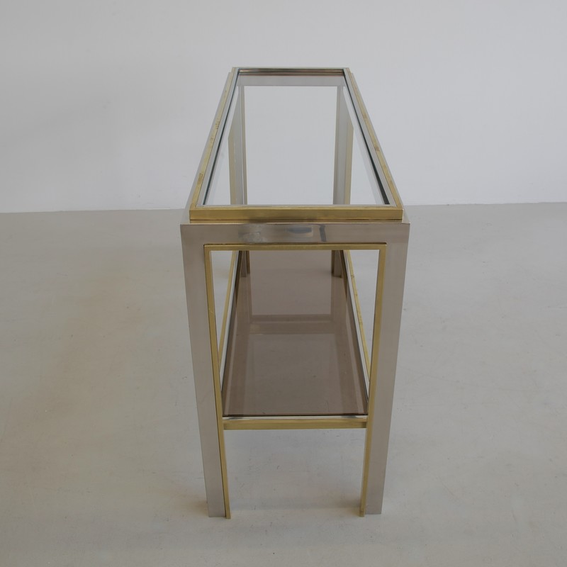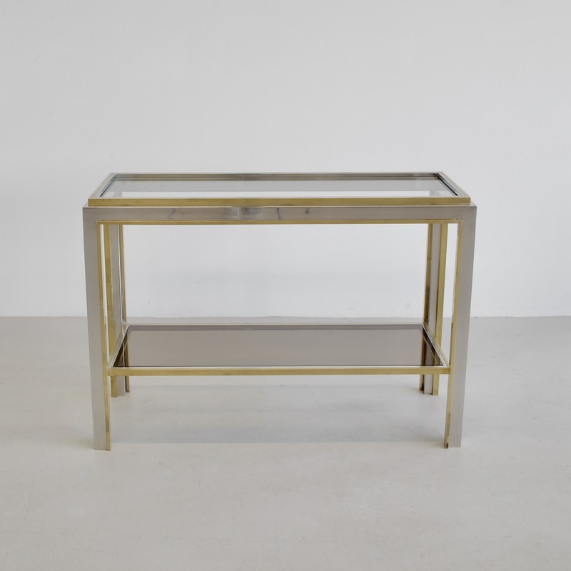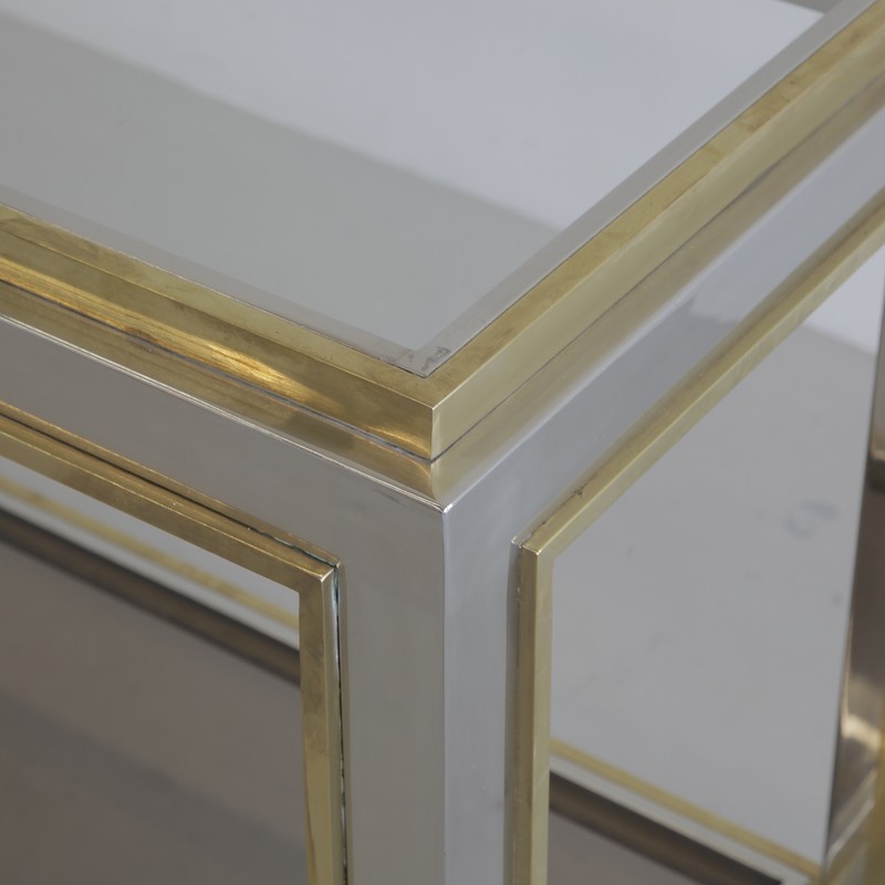 Brass and nickel plated Console Table by Romeo REGA, Italy 1970