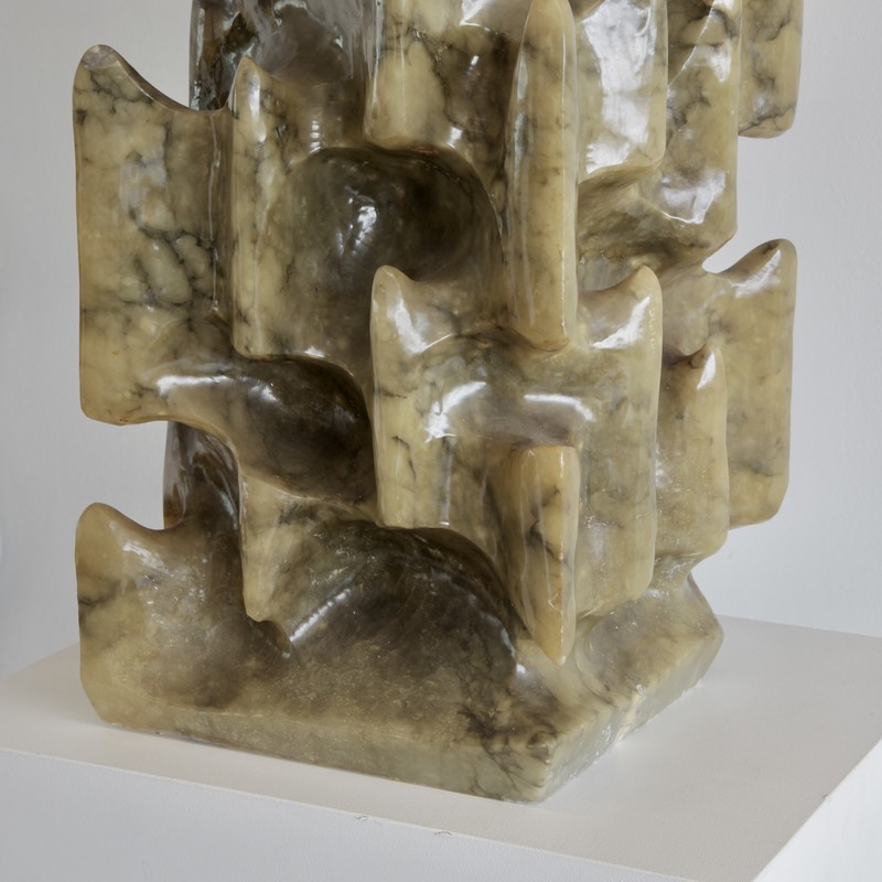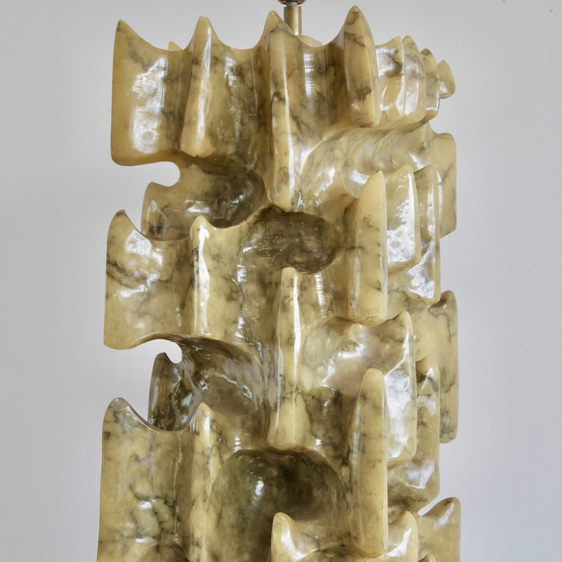 Unique Large Carved Alabaster Table Lamp, 1960s/1970s Italy