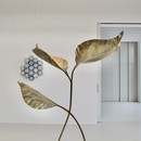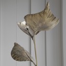 'RABARBARO' floor lamp with three large illuminated leaves in hammered brass and organically shaped brass structure. Please note, this is an original piece from the 1970s, not one of the numerous late copies. Three E27 light fittings.