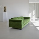 Large sofa upholstered in green velvet designed by Tecno's Borsani and Bonetti in 1966. Polished metal feet appear retracted inwards with respect to the centre of the disk. Original Tecno label on foot. Beautiful condition!