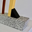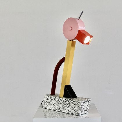 The Tahiti table light (1981) featured in the first, ground-breaking collection issued by Ettore Sottsass and his associates under the brand name of Memphis. The project was a willful assault on notions of "good taste" and "perfect" form. The designs were challenging and ironic and drew deliberately on kitsch and vernacular sources. Tahiti has a jokiness that is anti-chic, anti-fashion, anti- pretension. "We are all sure that Memphis furniture will soon go out of style," wrote Sottsass provocatively. Yet, as a philosophical position, Memphis has proved an indelible aspect of recent design history.