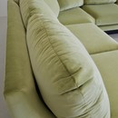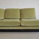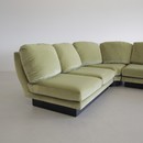 A fully restored 'Super-C' modular sofa group by Willy Rizzo consisting of three separate modules (one corner module and 2 double seat modules). The frame has been fully restored including all padded straps, seat cushions, etc. Professionally re-upholstered in a fine light green and very durable luxury English velvet. Please note, we also have a square Pouf from the same series available (not yet upholstered).